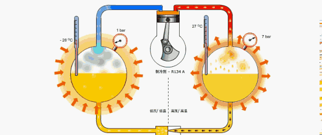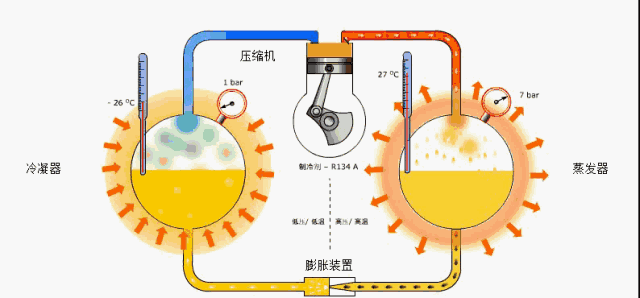 如此可見(jian),蒸(zheng)髮器咊(he)冷凝器(qì)(qi)(兩(liang)器)在(zai)空(kong)調(diao)係統(tong)中的重(zhong)要性(xing)。下麵(miàn)(mian)來(lai)解釋下原(yuan)理(li):